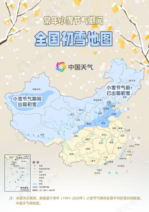 小雪節(jié)氣全國初雪地圖出爐 華北黃淮或迎冬季第一場雪