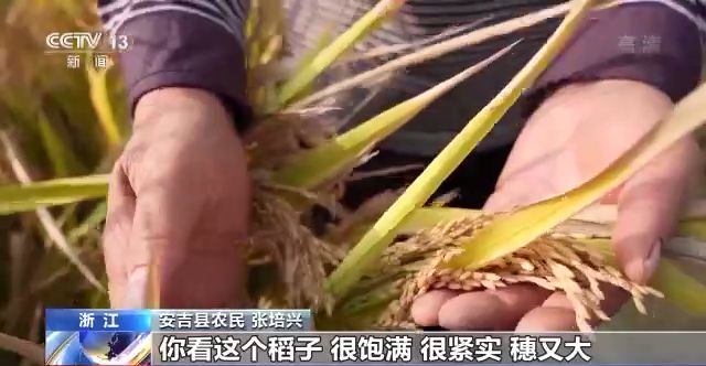 浙江省安吉縣農(nóng)民 張培興:你看這個(gè)稻子,很飽滿、緊實(shí),穗又大,稻子千粒重也比往年要重。已經(jīng)到達(dá)我的預(yù)期了,我很開心。