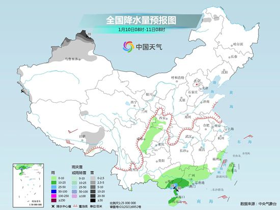 具體來看,今天,新疆北部和西部山區(qū)、西藏西部等地部分地區(qū)有小到中雪,其中,新疆北疆北部、西藏西部局地有大到暴雪。江南中南部、華南大部、臺(tái)灣島等地部分地區(qū)有小到中雨,其中,廣東東北部和西南部沿海、海南島北部等地局地有大雨。