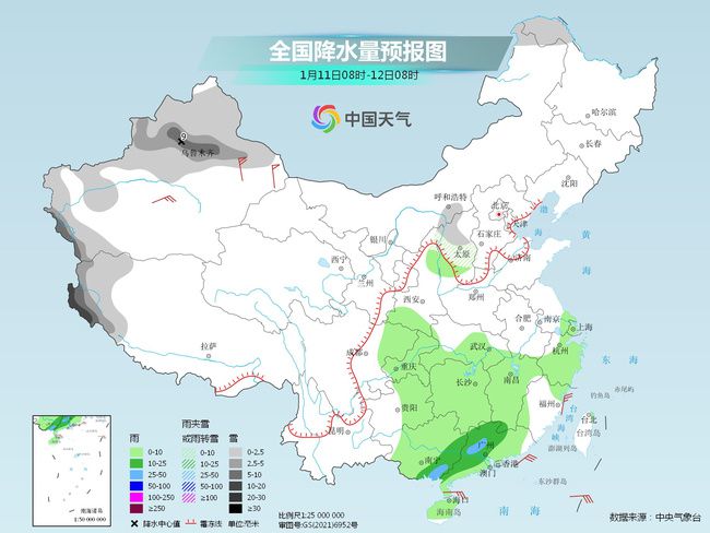 今起三天,新疆仍有持續(xù)性強(qiáng)降雪,明后天降雪范圍還將向南擴(kuò)展,大部有小到中雪,沿天山一帶有大到暴雪。此外,明天起,我國中東部地區(qū)雨雪也將增多,臨近春節(jié),公眾需關(guān)注航班、客運(yùn)信息,駕車出行注意小心慢行。