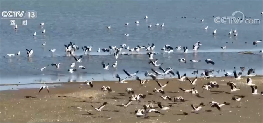 由于今年氣溫偏高,候鳥北遷的時間比往年提前了10天以上。在溫暖的陽光下,候鳥們或在高空展翅,或在淺灘覓食,其中不乏各種珍稀鳥類。湖面煙波浩渺,空中萬鳥翔集,蔚為壯觀。