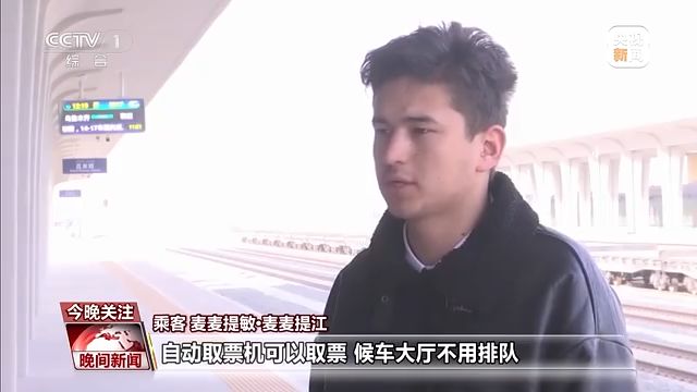 乘客 麥麥提敏 麥麥提江:之前我們來(lái)和田都是開車、坐汽車。時(shí)間很長(zhǎng)很累,現(xiàn)在火車通了之后,給我們帶來(lái)很多方便,自動(dòng)取票機(jī)可以取票,候車大廳不用排隊(duì)。