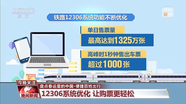 春運(yùn)出行需求上升,人們首先想問的,可能就是車票還好買嗎?作為全球訪問量和交易量最大的在線票務(wù)系統(tǒng),鐵路12306系統(tǒng)功能不斷優(yōu)化,單日售票量最高達(dá)到1325萬(wàn)張,高峰時(shí)1秒鐘售出車票超過(guò)1000張。旅客每天可提交發(fā)到站相同或同城不同車站的兩個(gè)相鄰日期候補(bǔ)車票,從以前的各2張?jiān)黾拥礁?張。今年春運(yùn)期間,候補(bǔ)兌現(xiàn)成功率達(dá)到75%左右。