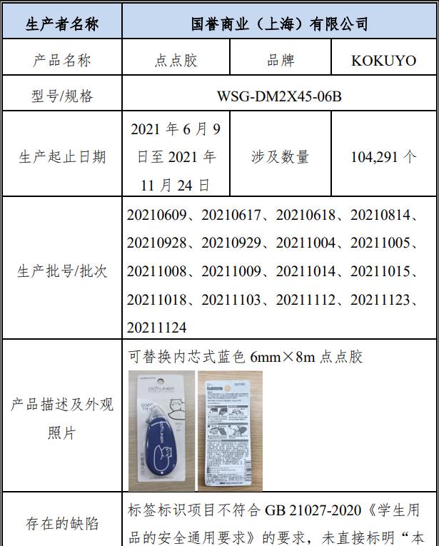KOKUYO國(guó)譽(yù)文具召回10萬(wàn)余個(gè)點(diǎn)點(diǎn)膠