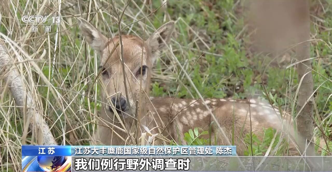 江蘇大豐麋鹿國(guó)家級(jí)自然保護(hù)區(qū)管理處 陳杰:我們例行野外巡查時(shí)發(fā)現(xiàn)了這頭小鹿,這是我們今年第一頭新生小鹿,每年的3月初,麋鹿開始產(chǎn)仔,到5月份會(huì)達(dá)到一個(gè)高峰期。