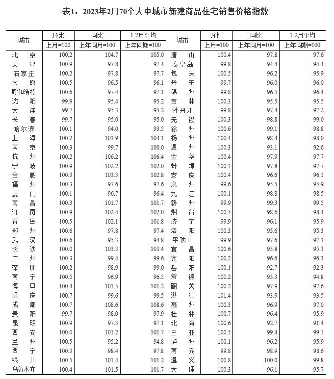 2月份,70個大中城市中,新建商品住宅銷售價格同比上漲城市有14個,比上月減少1個;二手住宅銷售價格同比上漲城市有7個,比上月增加1個。