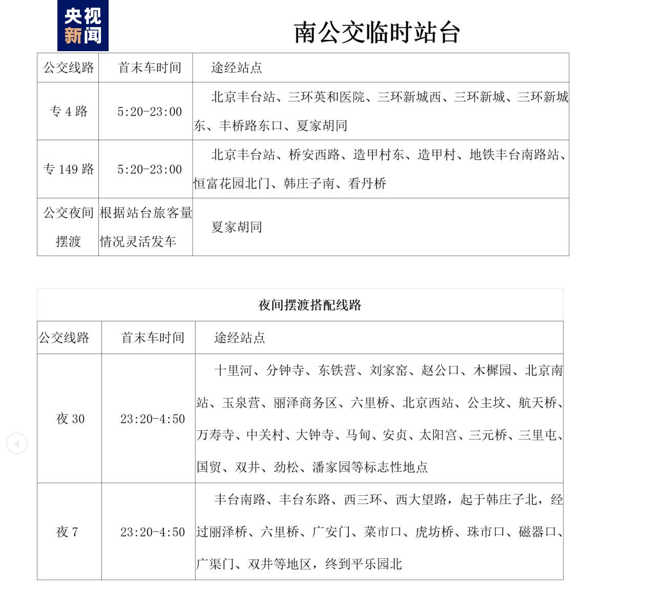 0時(shí)至5時(shí),北京豐臺(tái)站,在出租車調(diào)度站及南廣場臨時(shí)公交站臺(tái)區(qū)域設(shè)有免費(fèi)擺渡車幫助旅客離站,共計(jì)兩個(gè)方向,具體如下: