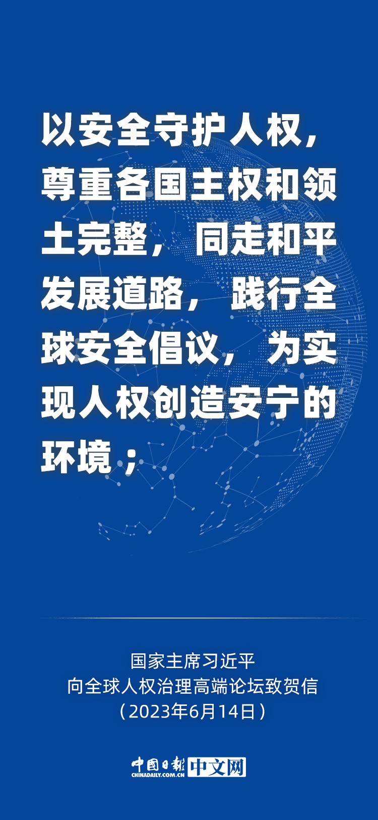6月14日,國家主席習近平向全球人權(quán)治理高端論壇致賀信。習近平指出,當前,人類又一次站在歷史的十字路口,全球人權(quán)治理面臨嚴峻挑戰(zhàn)。我們主張: