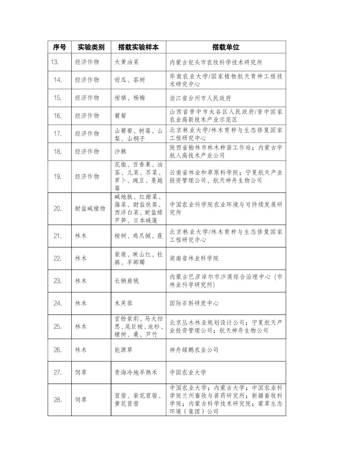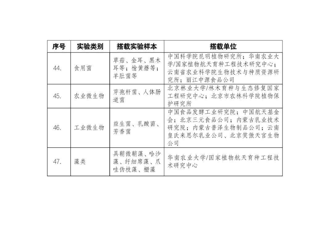 今日,中國載人航天工程辦公室公布神舟十六號載人飛船航天育種實驗項目清單,詳情如下: