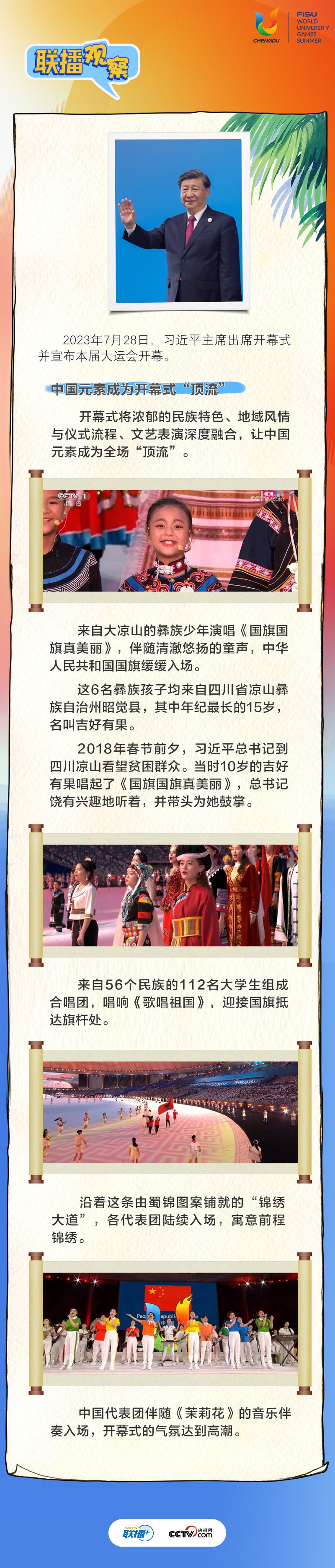 7月28日晚,第31屆世界大學(xué)生夏季運(yùn)動(dòng)會(huì)開幕式在四川省成都市舉行。習(xí)近平主席出席開幕式并宣布本屆大運(yùn)會(huì)開幕。