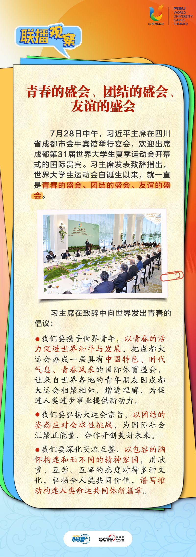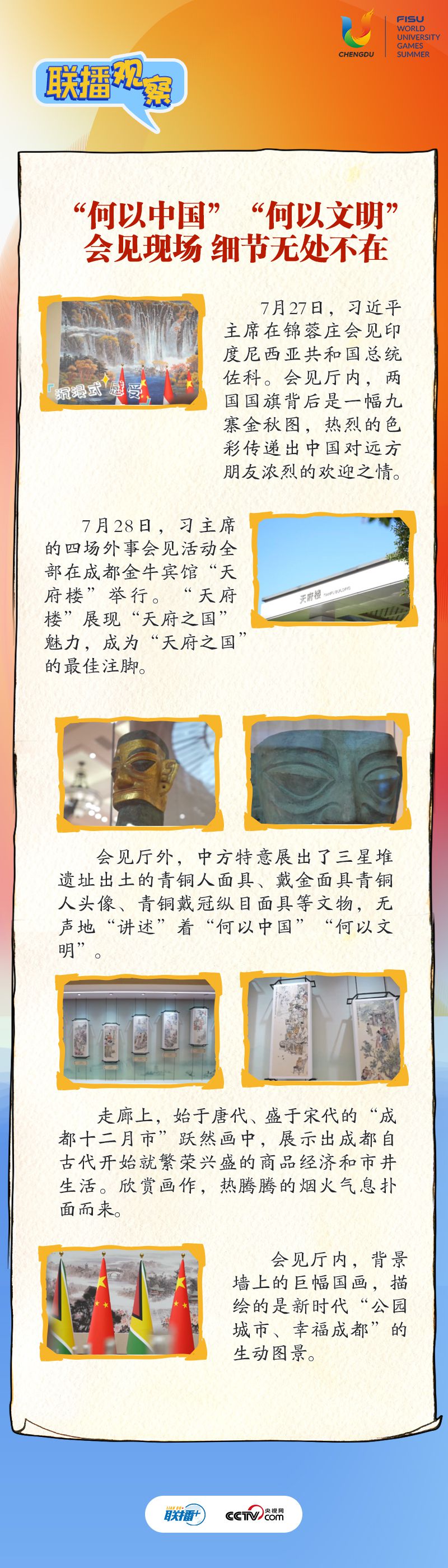 大運(yùn)會(huì)時(shí)間,我國(guó)重要的主場(chǎng)外交也同步拉開帷幕,習(xí)近平主席的日程格外繁忙。央視網(wǎng)《聯(lián)播+》帶您沉浸式感受這場(chǎng)青春盛會(huì)為世界送出的別具匠心的“四川禮物”。