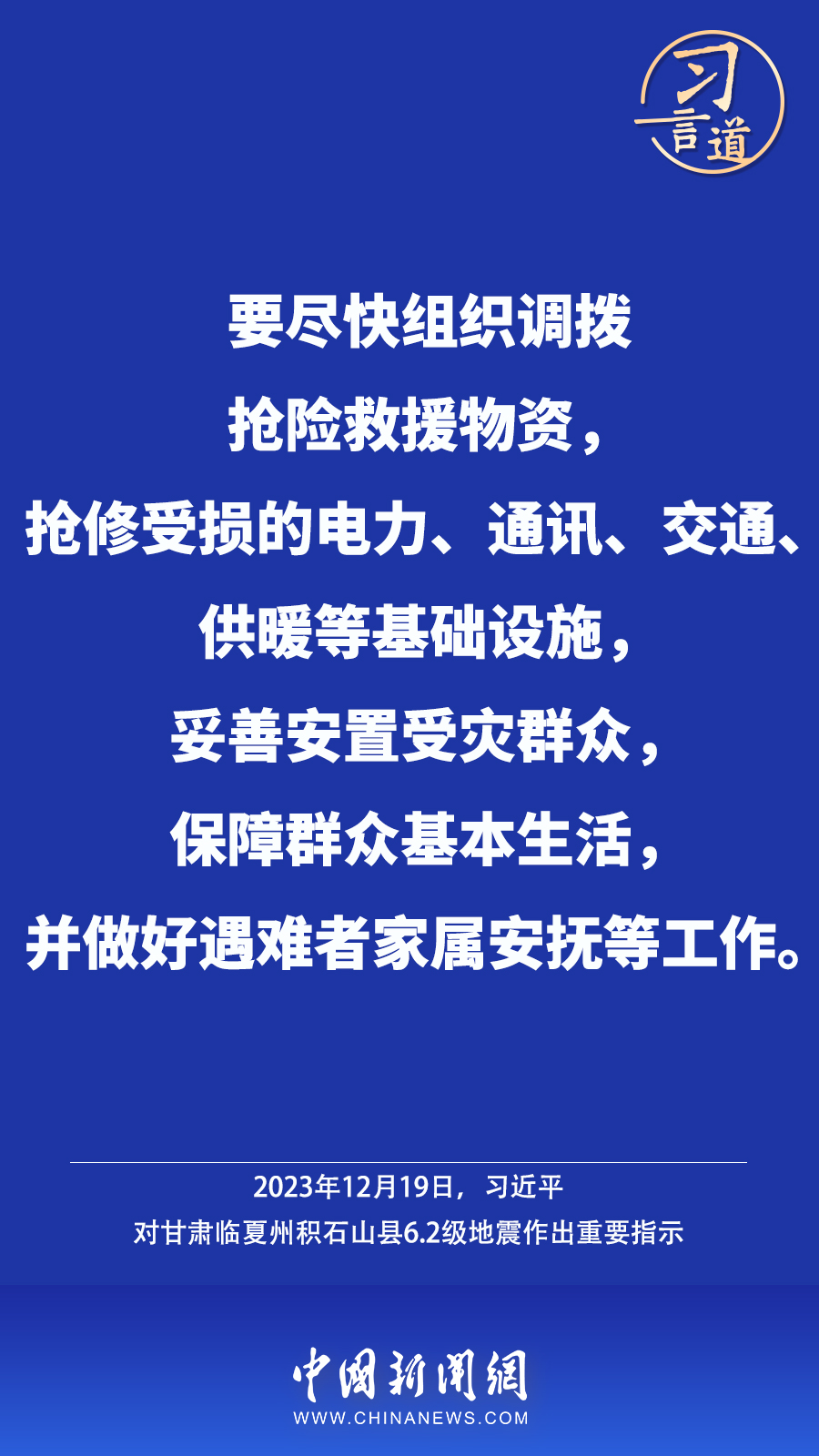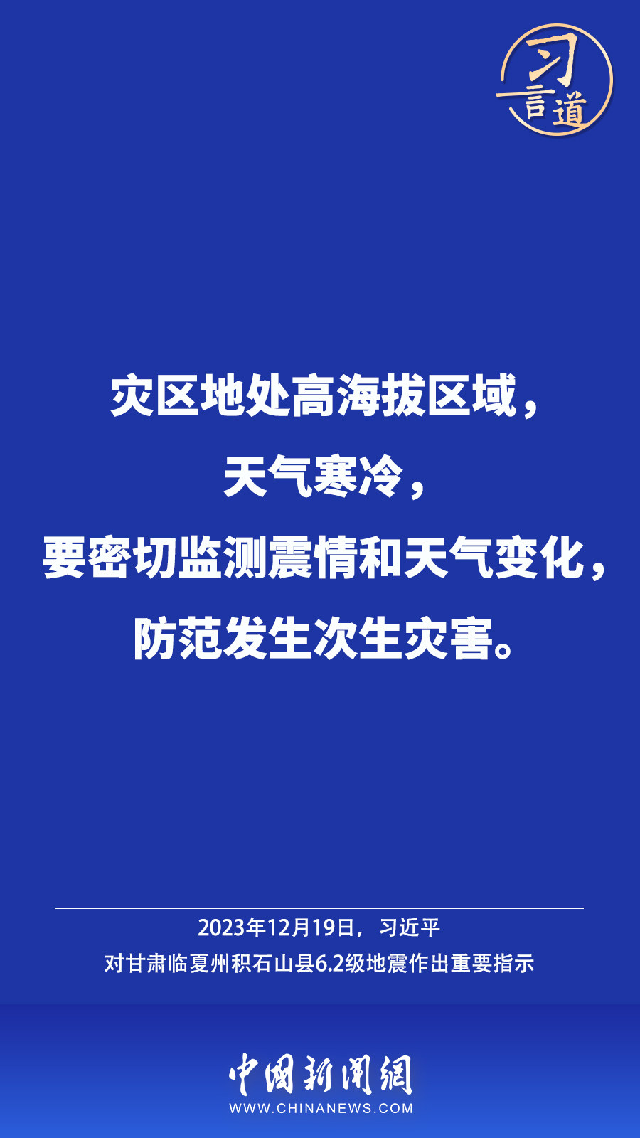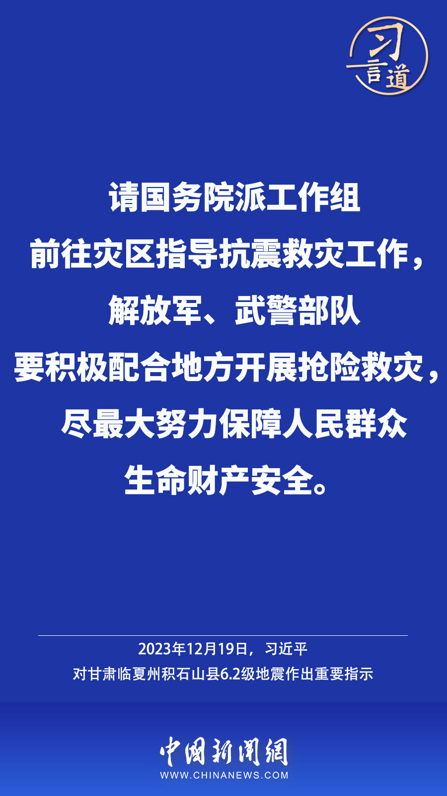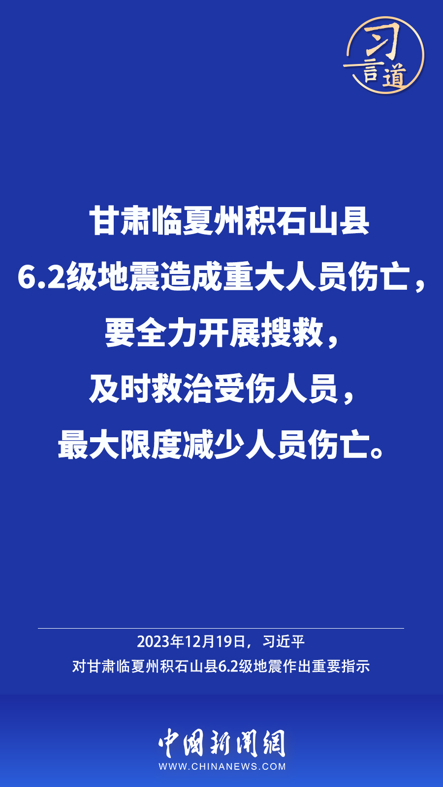 北京時間12月18日23時59分,甘肅臨夏州積石山縣發(fā)生6.2級地震,震源深度10公里。地震發(fā)生后,中共中央總書記、國家主席、中央軍委主席習近平高度重視并作出重要指示——