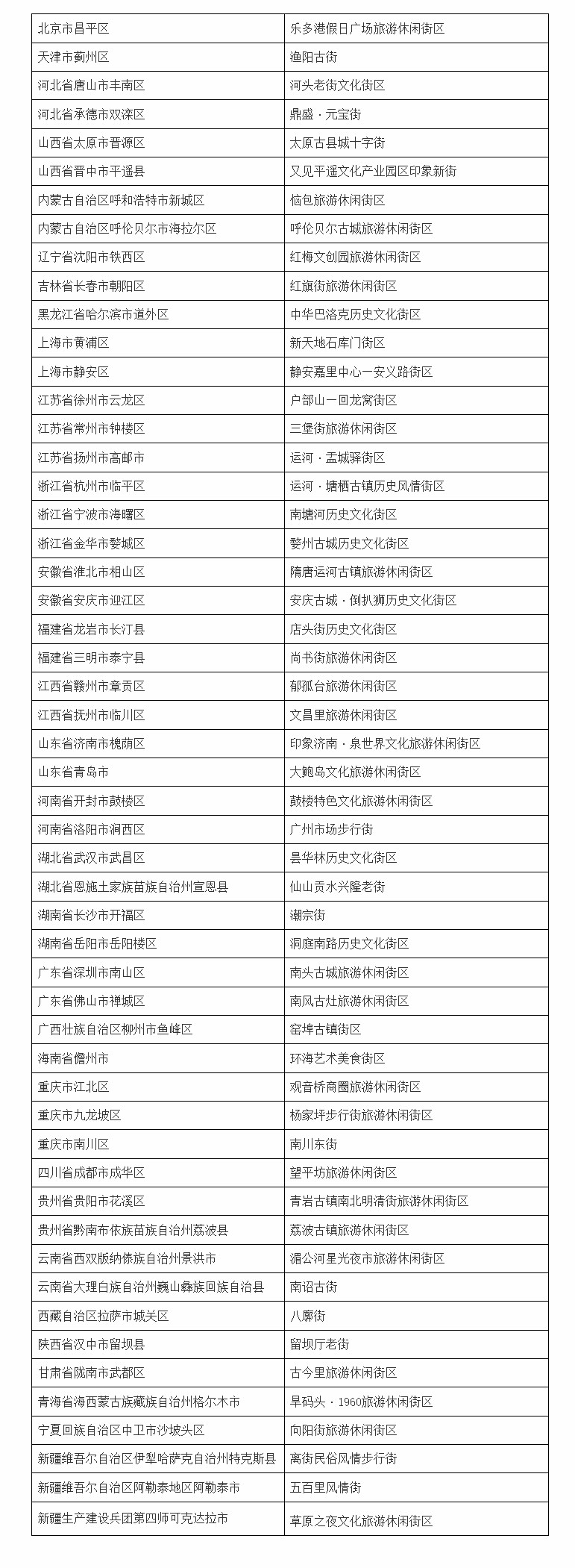 文旅部確定第三批國(guó)家級(jí)旅游休閑街區(qū)名單