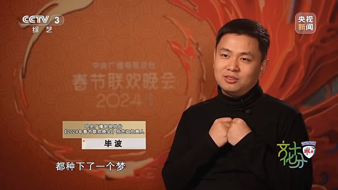 中央廣播電視總臺(tái)《2024年春節(jié)聯(lián)歡晚會(huì)》技藝組負(fù)責(zé)人 畢波:我們童年看到的很多文藝作品,其實(shí)在我們心中都種下了一個(gè)夢(mèng),過去了二三十年它開始生根發(fā)芽。研究蛟龍?zhí)柕倪@些科研人員,他們小時(shí)候也看《哪吒鬧海》,我們甚至邀請(qǐng)了航天員去唱這首歌,他們小時(shí)候看的是《大鬧天宮》,現(xiàn)在他們?nèi)司驮谔鞂m,這是一個(gè)多么美妙的實(shí)現(xiàn)圓夢(mèng)的故事。