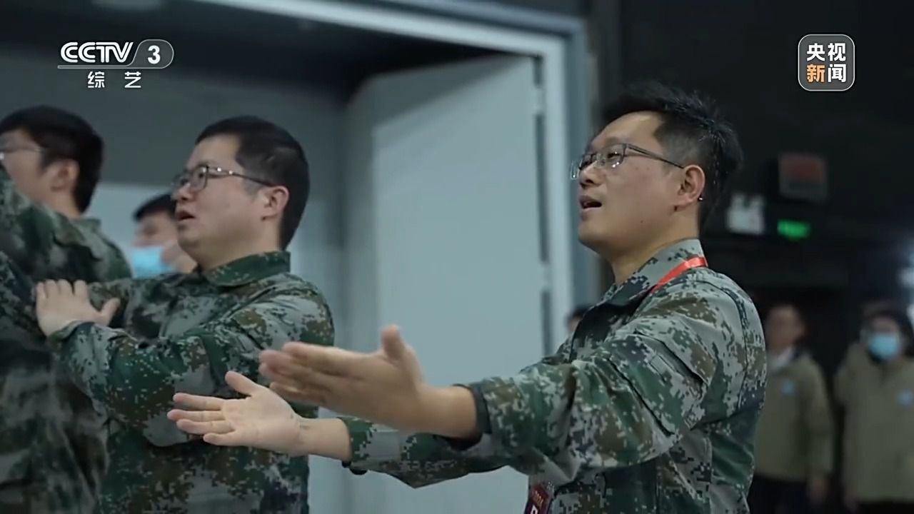 南京理工大學(xué)機(jī)械工程學(xué)院火箭導(dǎo)彈發(fā)射工程系主任 任杰:你看我們穿的這個(gè)服裝跟國防是相關(guān)的,而且又是演的貝塔這個(gè)角色,都應(yīng)該為它去增添光彩。我們?cè)谧呃壤锩娌辉诤醮蠹业哪抗?,雖然文藝表演不是我們的專長(zhǎng),但是我們拿出真誠的態(tài)度,因?yàn)榛叵胄r(shí)候看動(dòng)畫片多幸福,小時(shí)候蹦蹦跳跳唱的時(shí)候,要把情緒傳染給大家。
