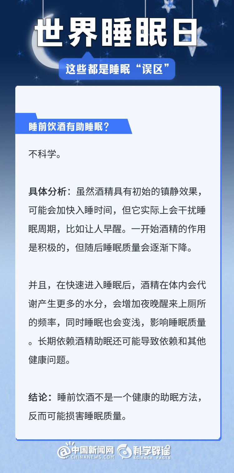 中新網(wǎng)3月21日電 《中國(guó)睡眠研究報(bào)告(2024)》顯示,2023年居民睡眠指數(shù)為62.61分,較2022年降低了5.16。去年的報(bào)告中,曾有近半數(shù)民眾每晚平均睡眠時(shí)長(zhǎng)不足8小時(shí)(47.55%)。很多人正在經(jīng)受著睡眠問題的困擾,為了避免大家被誤導(dǎo),我們總結(jié)了幾個(gè)生活中常見的睡眠誤區(qū),一起來了解一下吧!(來源:科學(xué)辟謠 中國(guó)新聞網(wǎng)微博)