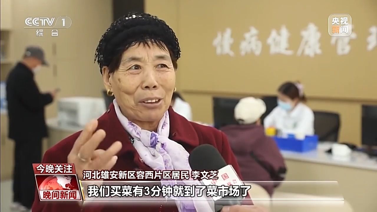 河北雄安新區(qū)容西片區(qū)居民 李文芝:我們買菜,有3分鐘就到了菜市場了,挺好的。送孫子也挺近,坐一站(公交車)就到了學(xué)校這兒了,特別方便。