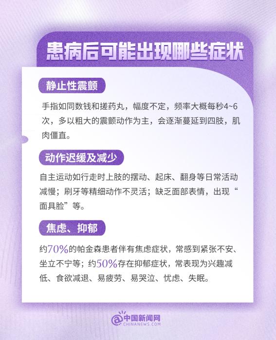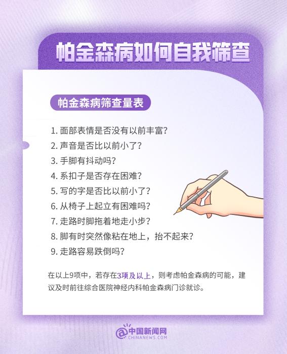中新網(wǎng)4月11日電 帕金森病是威脅老年人健康的“沉默殺手”。帕金森病=老年癡呆?得了帕金森病壽命會縮短?只有老年人會得帕金森?。拷裉焓鞘澜缗两鹕∪?,這些有關(guān)帕金森病的小知識,一起了解!