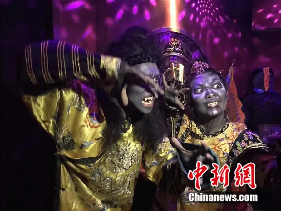 香港海洋公園萬(wàn)圣節(jié)“哈啰喂”節(jié)目中的演員。中新社記者 曾平 攝
