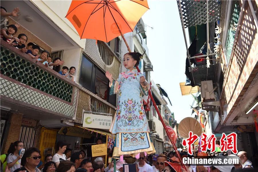 長(zhǎng)洲飄色巡游。中新社記者 張煒 攝
