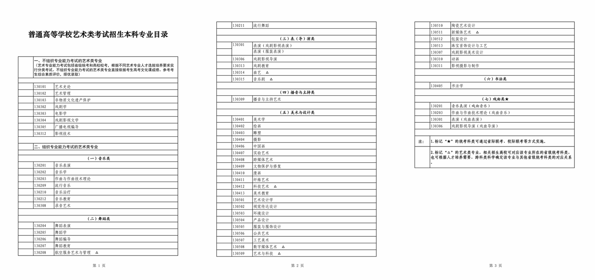 從目前來(lái)看,各地藝術(shù)類(lèi)專(zhuān)業(yè)省級(jí)統(tǒng)考設(shè)音樂(lè)類(lèi)、舞蹈類(lèi)、表(導(dǎo))演類(lèi)、播音與主持類(lèi)、美術(shù)與設(shè)計(jì)類(lèi)、書(shū)法類(lèi)等6個(gè)科類(lèi)。各地均出臺(tái)文件,對(duì)各科類(lèi)考試科目、分值、內(nèi)容、形式、要求和考試組織實(shí)施各環(huán)節(jié)等作出具體規(guī)定。