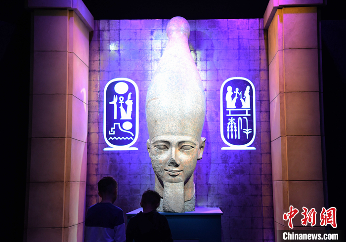 圖為兒童觀展者在觀看拉美西斯二世頭部雕像。 中新社記者 李洋 攝