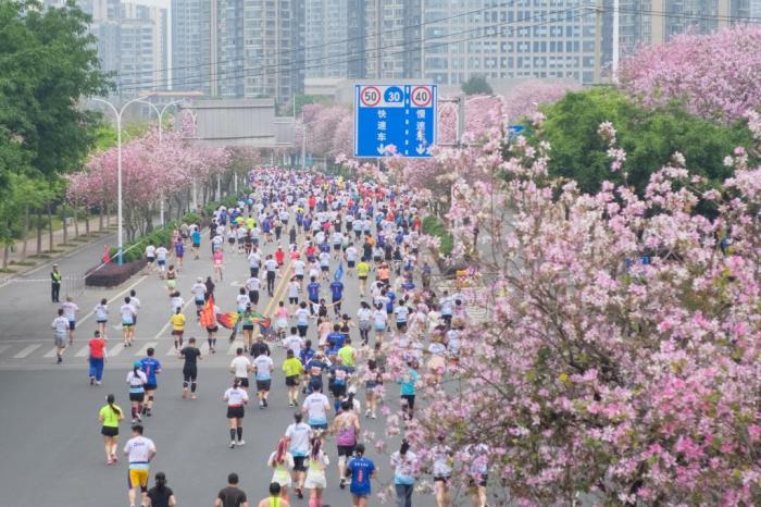 趁著柳州最美時(shí)節(jié),2023柳州馬拉松暨警察馬拉松4月9日開跑。該市獨(dú)特的洋紫荊盛開路段串聯(lián)成馬拉松賽道,參賽選手們一邊盡情奔跑,一邊領(lǐng)略城市獨(dú)特風(fēng)景。該次比賽吸引中國各地2萬人匯聚柳州,亦促進(jìn)當(dāng)?shù)亟?jīng)濟(jì)發(fā)展。