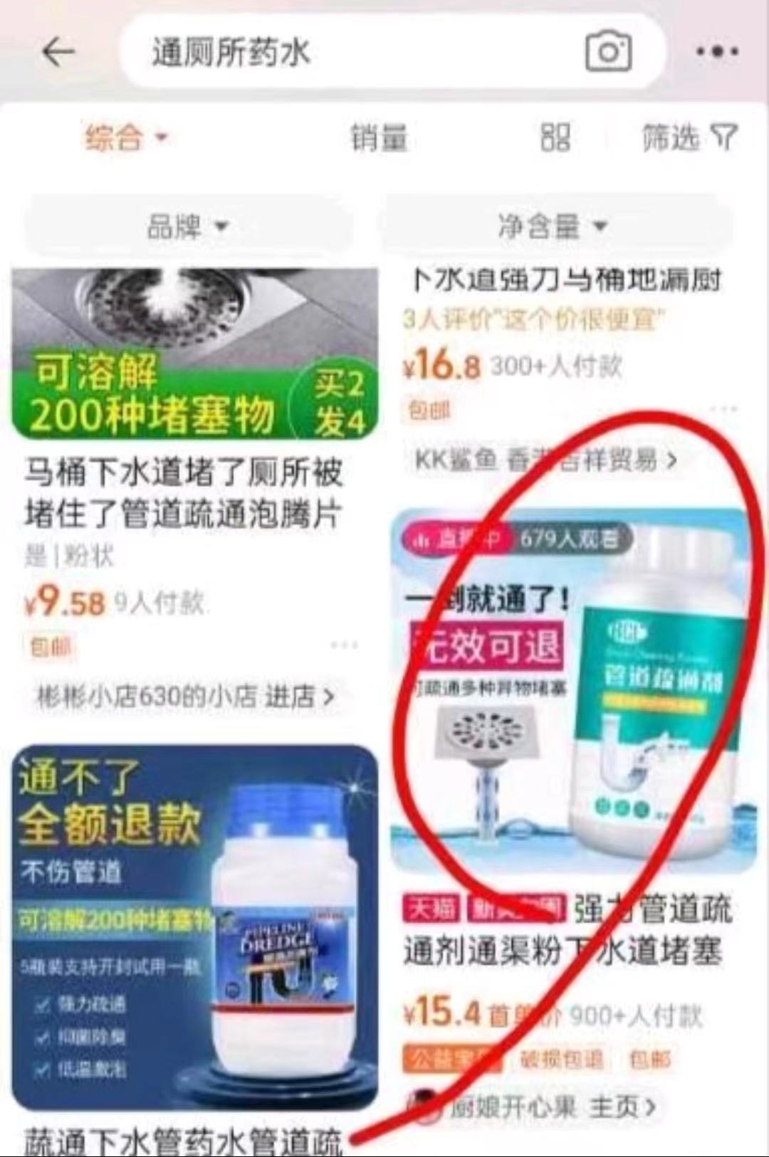 該負責(zé)人還提到,自己公司里疏通劑分為185元/斤和285/斤兩種,都是廠家配貨,和網(wǎng)上售賣的那些疏通劑,產(chǎn)品效果不一樣。