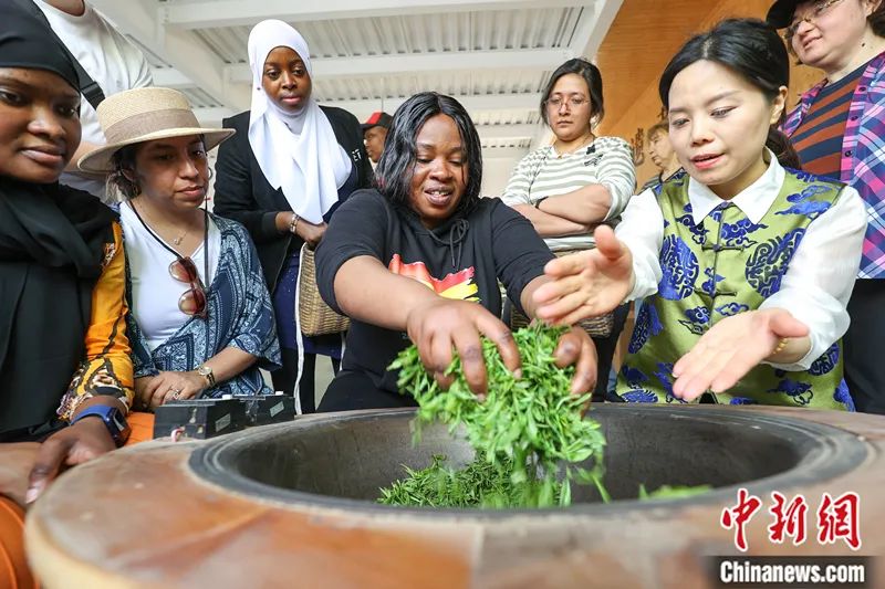 2023年4月,浙江省湖州市德清縣莫干山鎮(zhèn)東山村一茶園,外國留學(xué)生在學(xué)習(xí)制茶知識(shí)。王樹成 攝