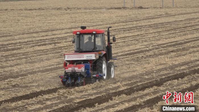 農(nóng)民正在操作新一代多功能免耕播種機(jī)開展春耕工作?!问㈤?攝