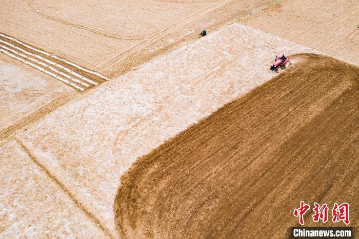 村民駕駛農(nóng)機(jī)犁地?!埼能?攝
