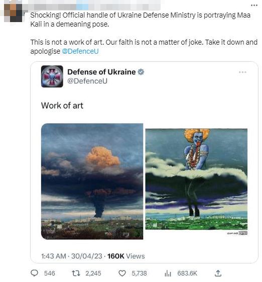 社交媒體上,網(wǎng)友們也議論紛紛,“令人震驚!烏克蘭國防部官方賬號竟然用一種侮辱性的姿勢描繪卡莉女神。”網(wǎng)友表示,“這不是藝術(shù)作品。我們的信仰不是拿來開玩笑的,請將其刪除并道歉。”