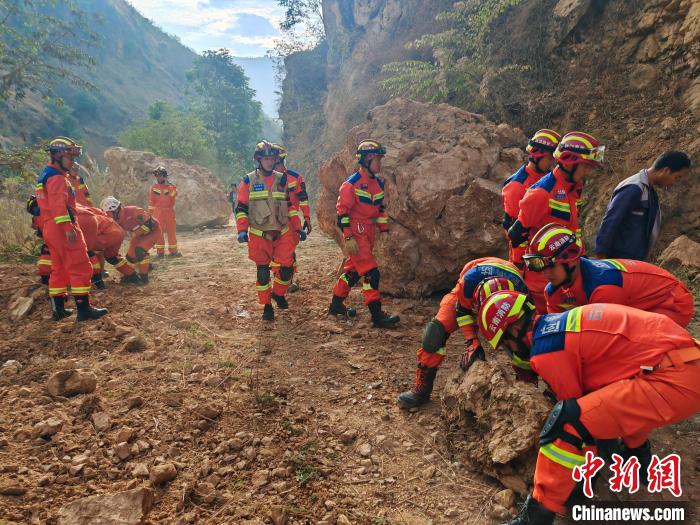 圖為消防指戰(zhàn)員正在地震現(xiàn)場開展救援?!≡颇鲜∠谰仍傟牴﹫D