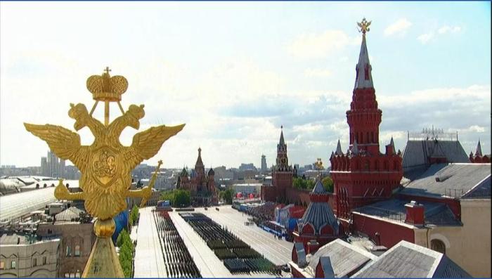 今年紅場閱兵的空中部分取消,最后一列軍事裝備沿著紅場行進(jìn)完畢后,軍樂隊(duì)奏響《勝利》樂曲。莫斯科時(shí)間11時(shí)左右,紅場閱兵式在“烏拉”聲中結(jié)束。