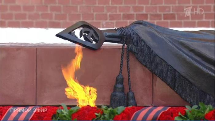 無名烈士墓前的長明火。圖片來源:俄羅斯第一頻道視頻截圖