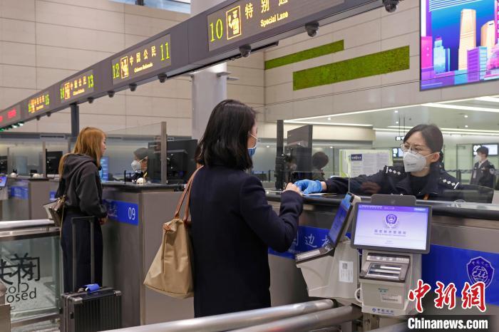 資料圖:虹橋邊檢站民警在對出境旅客進(jìn)行信息核查。 殷立勤 攝