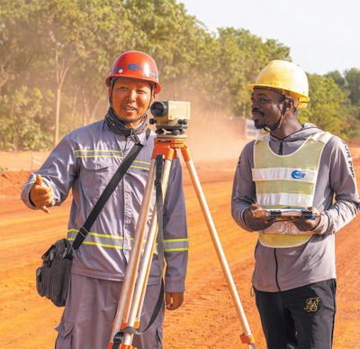 4月13日,中國和科特迪瓦工作人員在科北部公路項(xiàng)目施工現(xiàn)場一起工作。