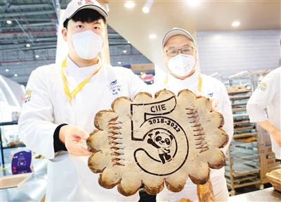近日,第六屆中國國際進口博覽會推介會在法國巴黎成功舉辦,不少法國農(nóng)業(yè)食品企業(yè)再次簽約。圖為去年舉行的第五屆中國國際進口博覽會上,烘焙師在展示法式面包。