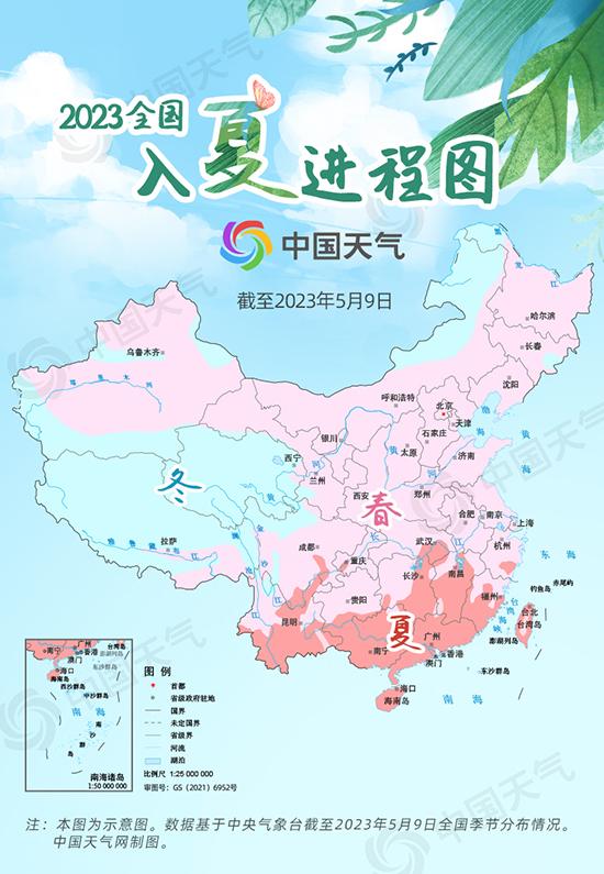 總體來(lái)看,今年入夏進(jìn)程相比常年略偏早。據(jù)中國(guó)天氣網(wǎng)氣象分析師石妍介紹,截至5月9日,我國(guó)華南大部、云南大部、湖南東部、江西大部、湖北東南部以及重慶部分地區(qū)已進(jìn)入氣象學(xué)意義上的夏季。除了新疆局地、內(nèi)蒙古東部、青海和西藏高海拔地區(qū)還處于冬季,其他地區(qū)都處于春季。