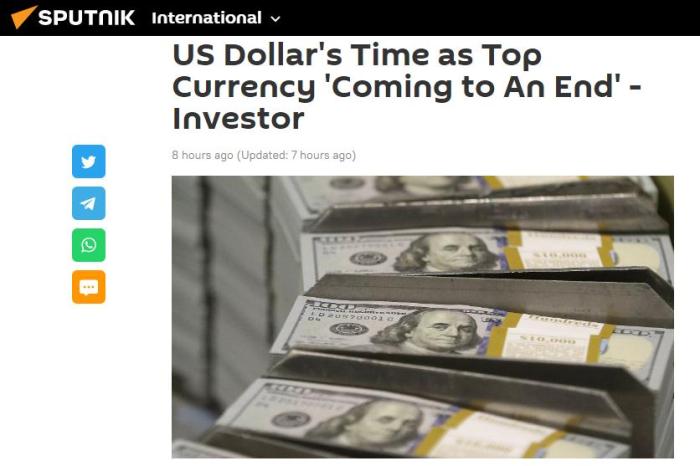 中新網(wǎng)5月17日電 據(jù)俄羅斯衛(wèi)星通訊社17日報道,美國著名投資家吉姆·羅杰斯(Jim Rogers)表示,由于美國缺乏中立性且信譽令人擔(dān)憂,美元作為世界最大貨幣的時代即將結(jié)束。
