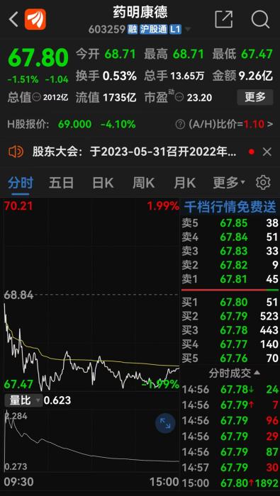 17日,藥明康德、藥明生物股價(jià)均出現(xiàn)下跌。截至17日收盤,藥明康德A股股價(jià)跌1.51%,H股股價(jià)跌超4%,藥明生物股價(jià)跌幅接近4%。藥明康德總市值超過(guò)2000億元人民幣,藥明生物總市值超1897億港元。(完)