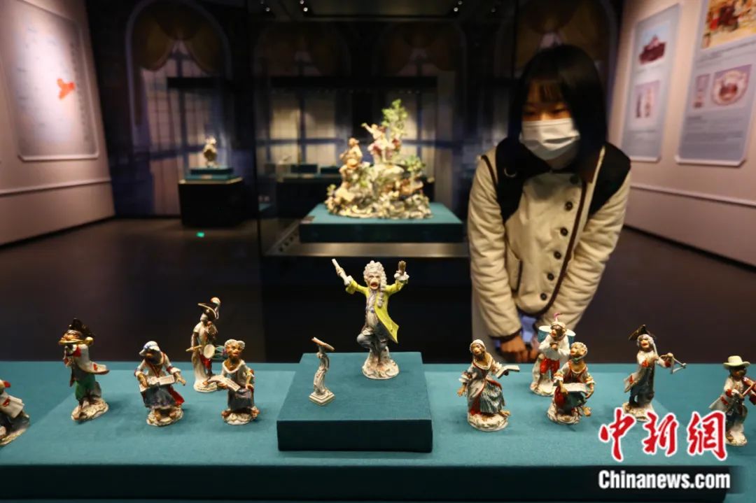 2021年1月15日,在江西省博物館新館展出的“白色金子·東西瓷都——從景德鎮(zhèn)到梅森瓷器大展”吸引參觀者。展覽講述了中國景德鎮(zhèn)、德國梅森兩個瓷器發(fā)源地,再現(xiàn)瓷器發(fā)展歷程和中國瓷器對世界的影響。劉占昆 攝