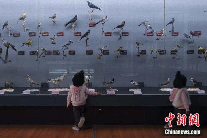 2022年5月18日是國際博物館日,小朋友走進昆明動物博物館參觀鳥類標本。康平 攝
