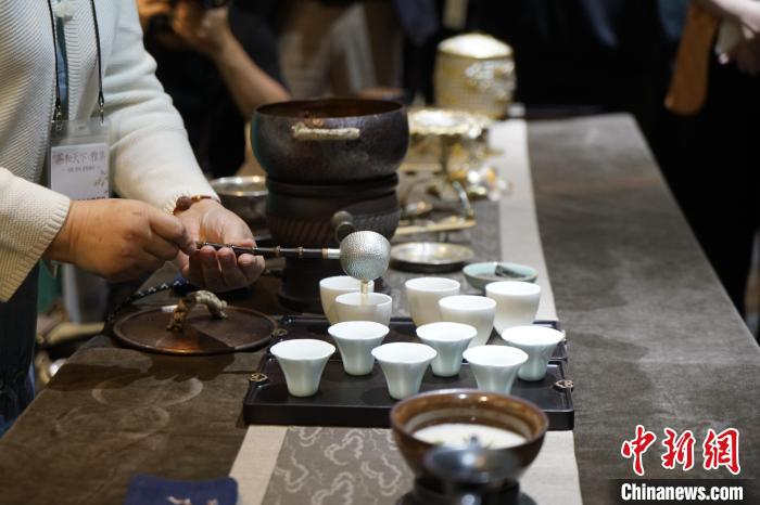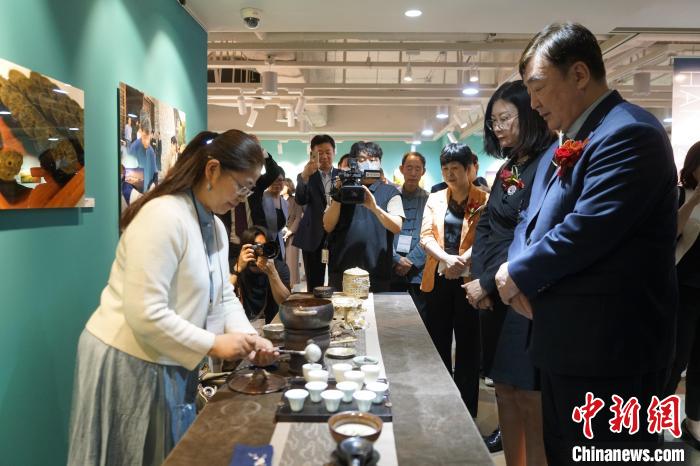 當(dāng)?shù)貢r(shí)間23日,“茶和天下·雅集”活動(dòng)開幕式暨茶韻山水——“綠水青山就是金山銀山”浙江省文旅圖片展在首爾中國文化中心舉行。圖為長興紫筍茶體驗(yàn)。中新社記者 劉旭 攝