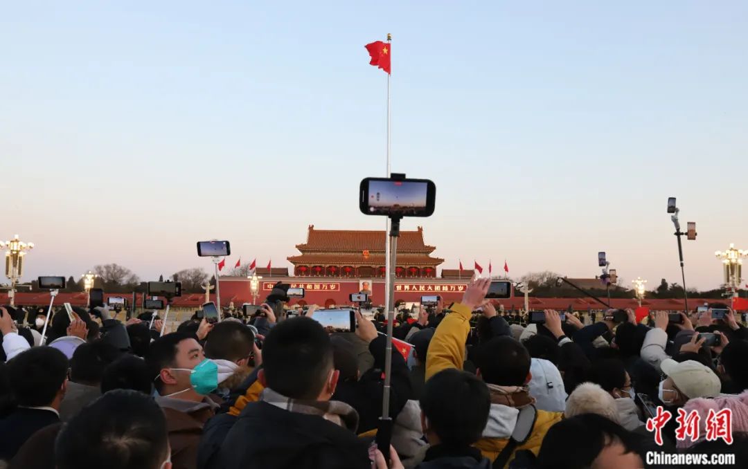 2023年1月1日,民眾在北京天安門廣場觀看新年首場升旗儀式。郭海鵬 攝