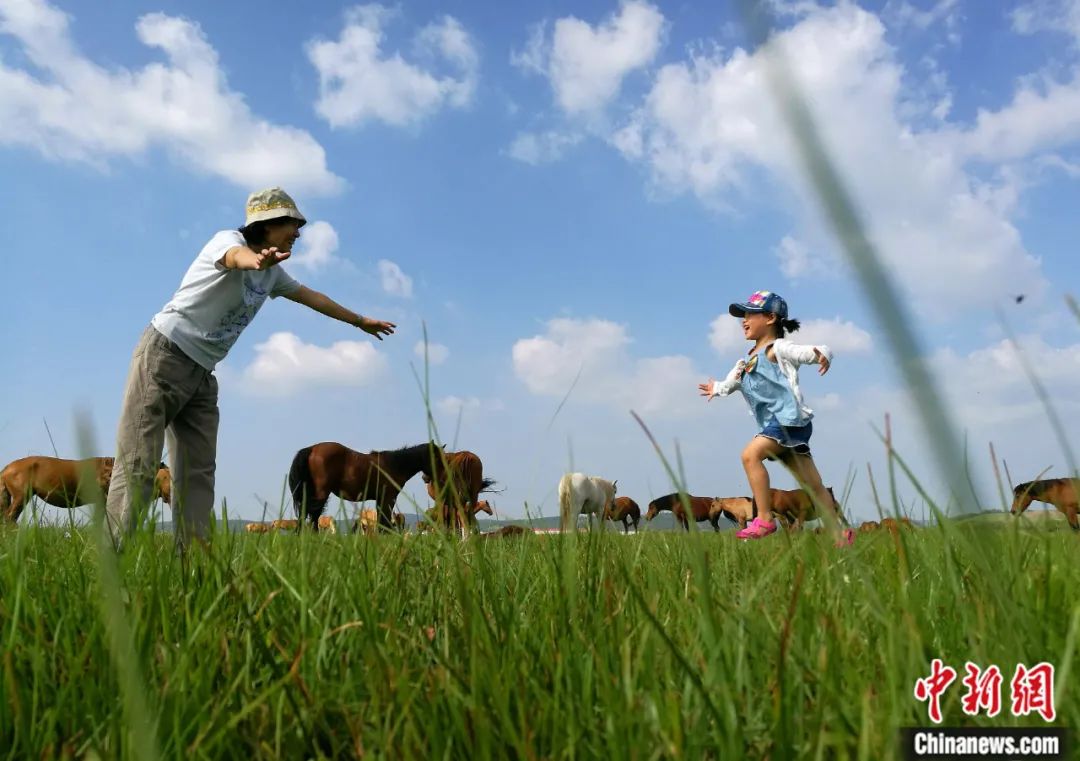 2016年8月,祖孫倆在塞罕壩機(jī)械林場內(nèi)玩耍。楊可佳 攝