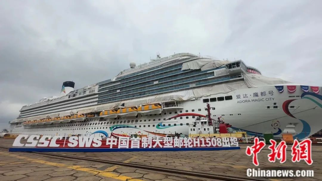 看,這艘身系“敦煌飛天彩帶”楚楚動人的我國首艘國產大型郵輪“愛達·魔都”號,今日盛裝出塢!