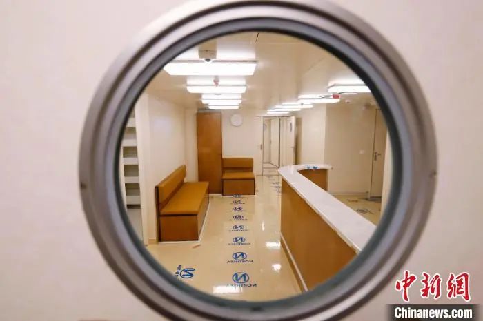 據(jù)了解,目前郵輪內裝整體進展進行了85%左右。以任何一間房間為例,壁板、天花、燈已全部安裝完成,正在進行地面的施工。其中全船的鋪料(水泥等基本材料)基本都已安裝完成,根據(jù)內飾的不同需求,正在進行地毯與瓷磚的鋪設,家具也在逐步入場。