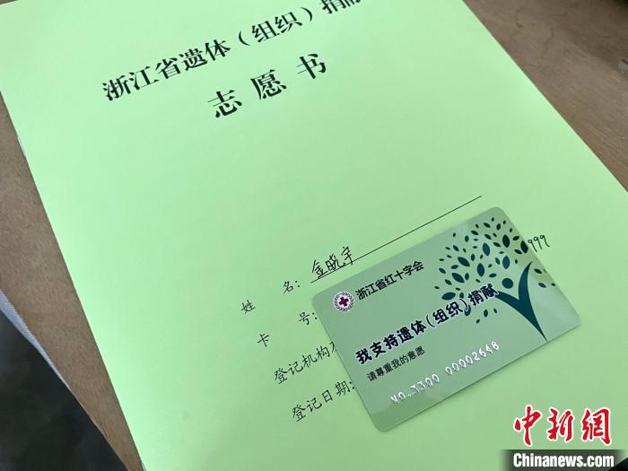 金曉宇的遺體捐贈(zèng)志愿書。 張煜歡 攝