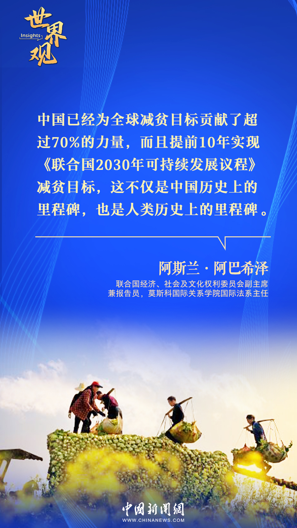 聯(lián)合國經(jīng)濟、社會及文化權(quán)利委員會副主席兼報告員,莫斯科國際關(guān)系學院國際法系主任阿斯蘭·阿巴希澤高度評價中國減貧成就,稱其樹立了新的歷史豐碑。